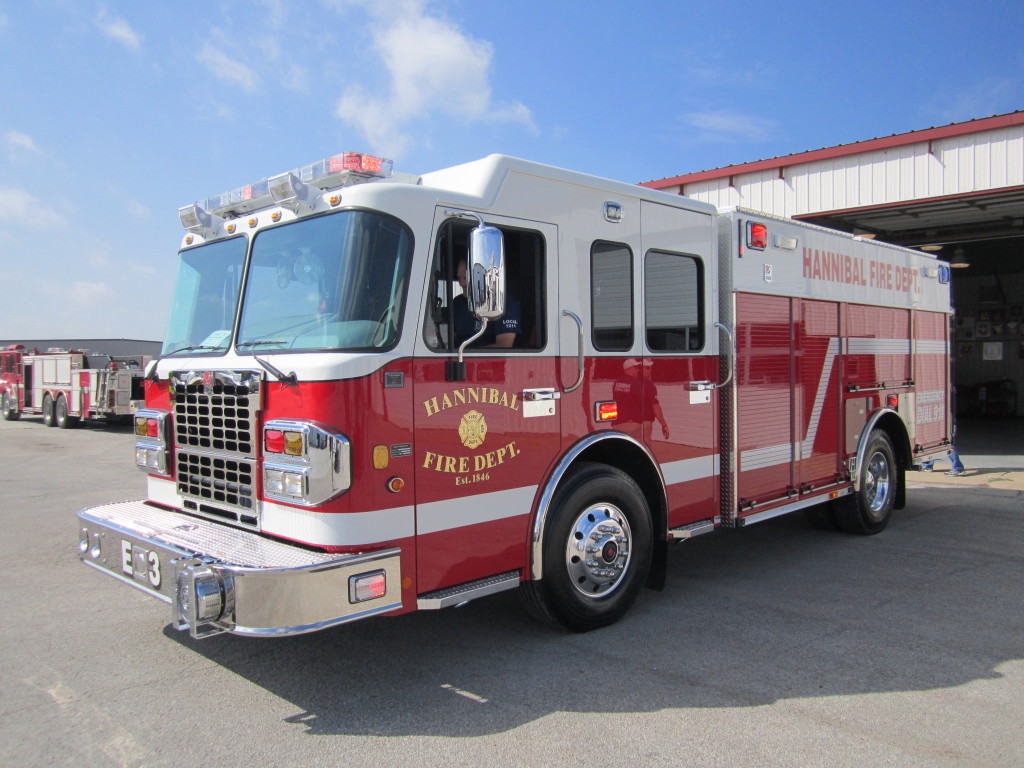 A Smeal custom Rear Mount Rescue Pumper fire apparatus was delivered to the Hannibal Fire Department in Hannibal, Missouri.